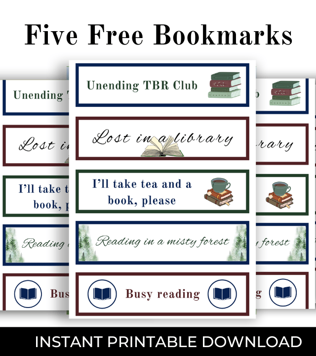 Do you need a bookmark for the countless stories you dive into? Sign up for my newsletter and get five free printable bookmarks so you'll always have one on hand!